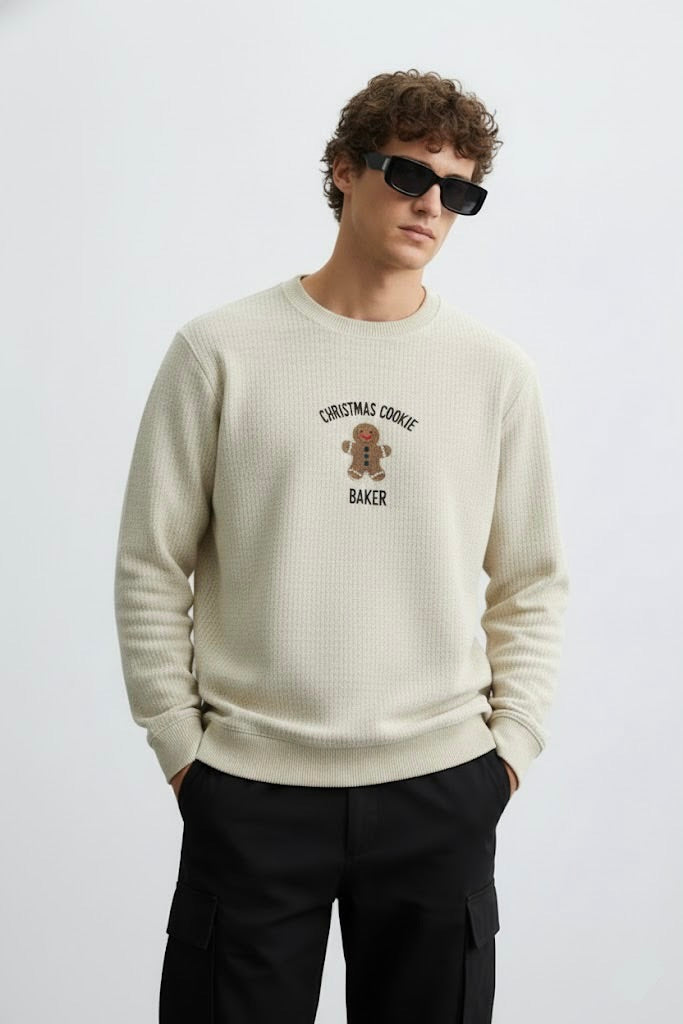 With its clean light grey shade and playful embroidery, this sweatshirt blends festive charm with everyday wearability.