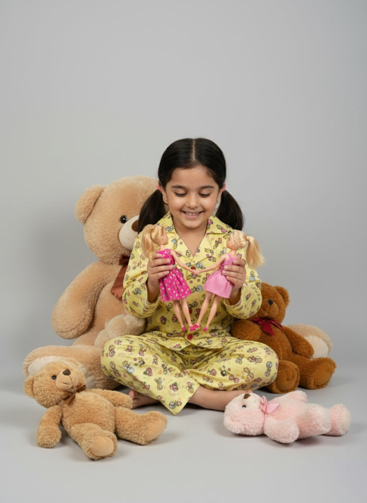 Keep your little one cozy and stylish with our Girls’ All-Over Rotary Printed Night Suit, crafted from imported Lycra fabric. Specially designed for ages 1 to 6 years, this night suit offers the perfect balance of softness, stretch, and breathability, ensuring all-night comfort.