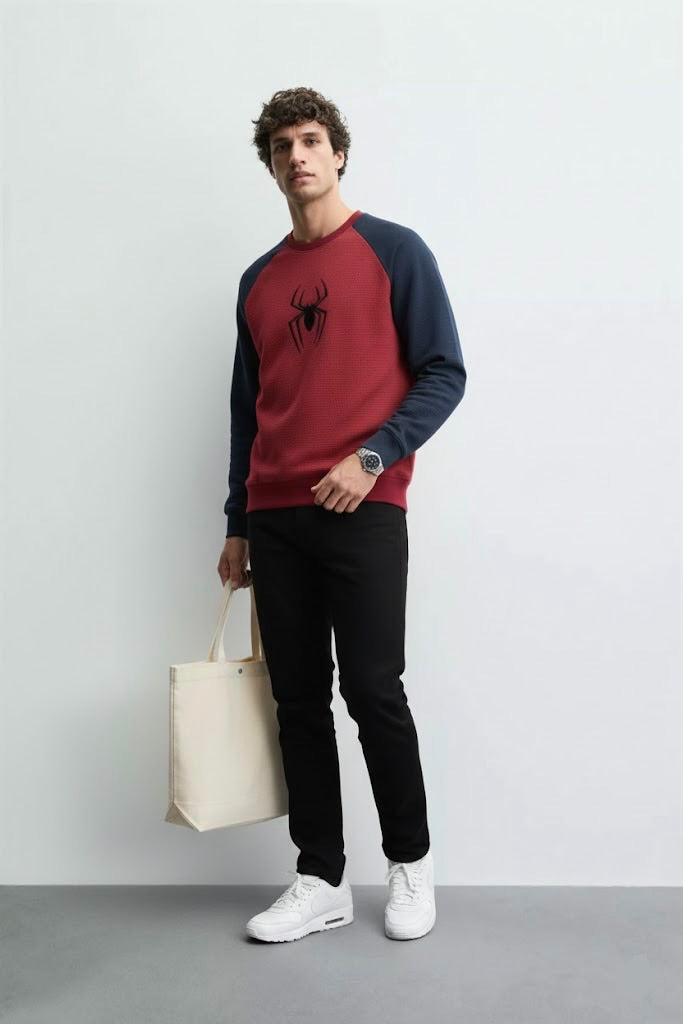 Maroon Ottoman Reglan Textured Sweatshirt – Spider Man Embroidery | 250 GSM Unisex Maroon Ottoman Reglan Textured Sweatshirt – Spider Man Embroidery | 250 GSM Unisex