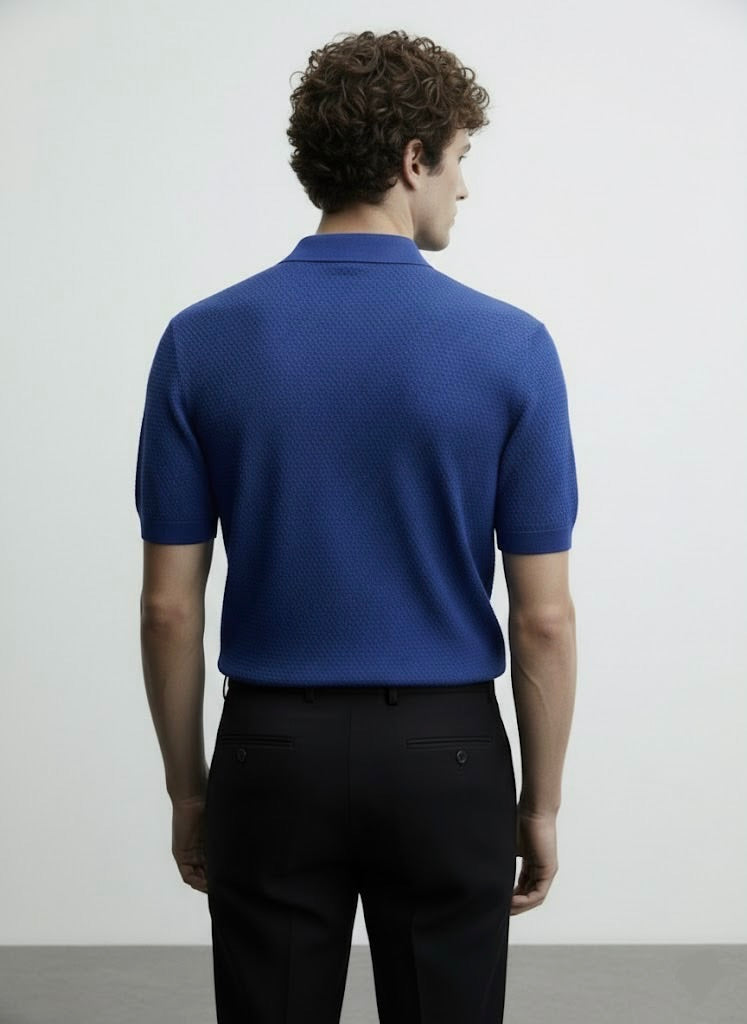 Stay cool and sharp this summer with our Oxford Blue Popcorn Textured Zipper Polo. Made from breathable 220 GSM cotton, the unique popcorn knit enhances airflow and adds a modern twist to a timeless silhouette.